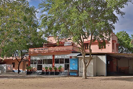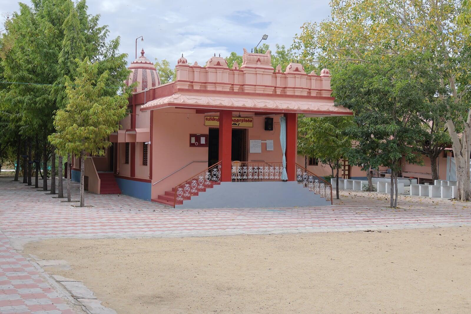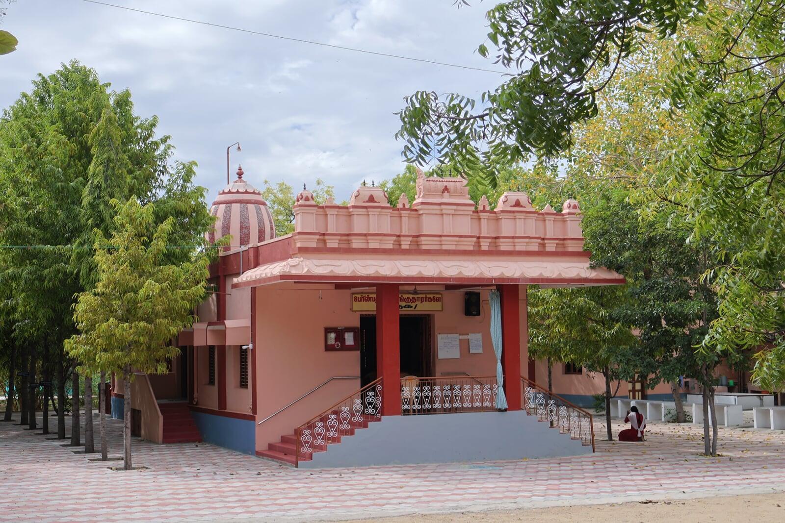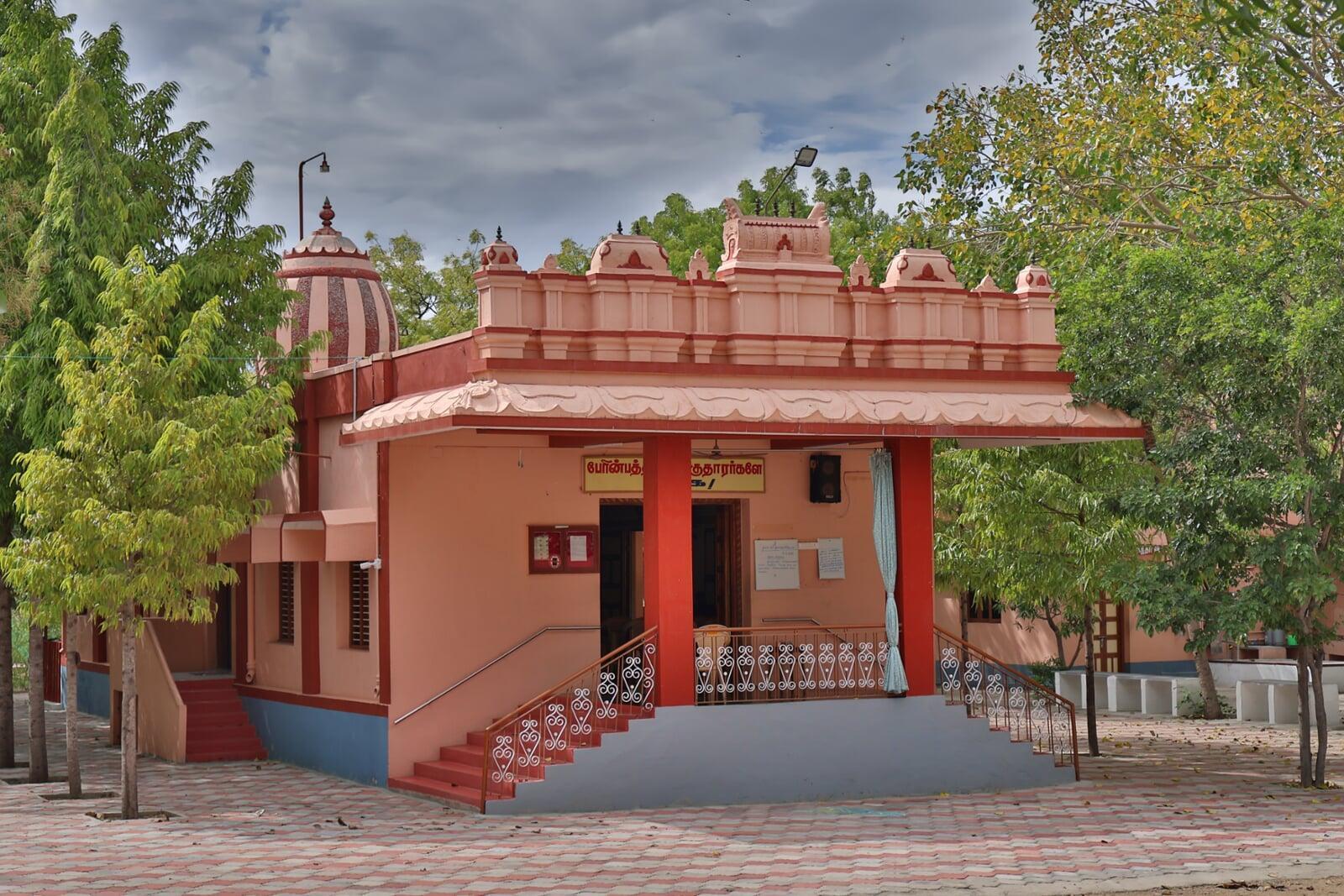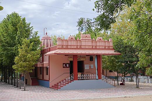As one enters the Ashram, which spans around fourteen acres, one finds a modest prayer hall with an edifice typical of the temple gopurams in Tamil Nadu. The devotees perform regular and special rituals on appropriate occasions in the temple. As one explores the campus, one comes across two distinct huts, uncommon in Tamil Nadu but typical in West Bengal. The architecture of the huts illustrates one of the distinct traits of the devotees of Konampatti: their unshakable and boundless devotion to Holy Mother Sri Sarada Devi. The huts, built in Chala style, are modelled on the holy mother's residence in Jayrambati. The huts, which came to be known as 'Jayrambati of the South', were consecrated by Srimat Swami Smarananandaji Maharaj, the then Vice-President of the Order, on 30 December 2008. The campus also has a sacred Panchavati, a meditation spot inspired by the Panchavati at Dakshineswar, where Sri Ramakrishna performed intense austerities.